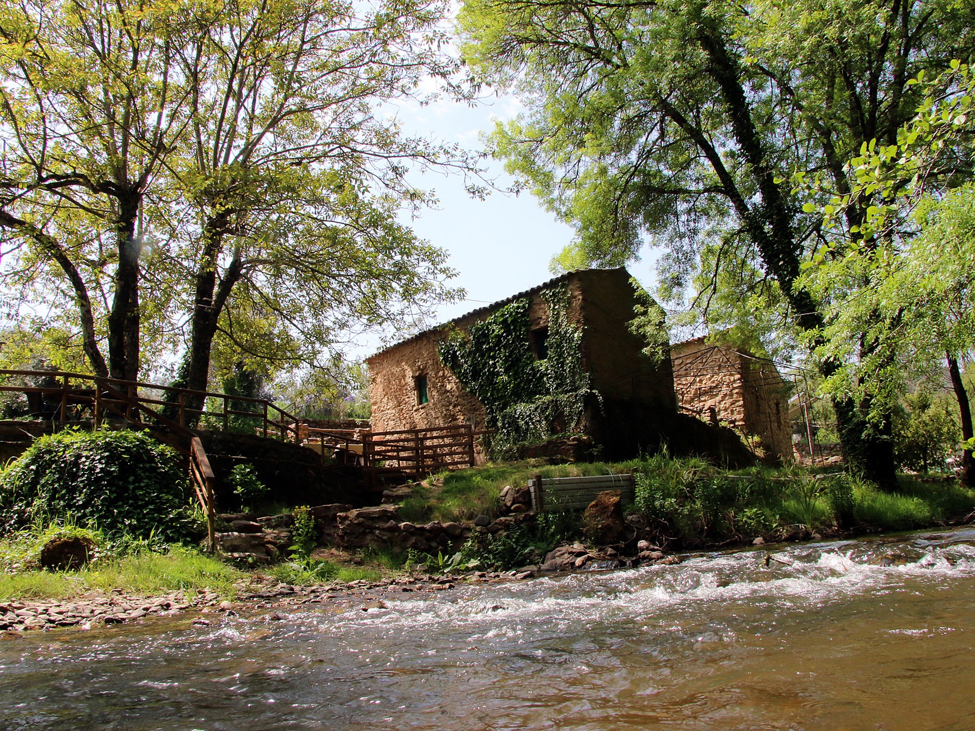 The interior is comfortable and cozy, but it is the outdoor space that is the main attraction of Sete Quintas, an accommodation located in Retorta, in the municipality of Miranda do Corvo, with 4 rooms and 1 family suite. Nature is imposing, and the Dueça River embraces the old mills, now restored and transformed into charming stone houses. Outdoors, guests can have barbecues and enjoy their meals surrounded by the dominant greenery. On warmer days, the outdoor pool is a great place to relax.