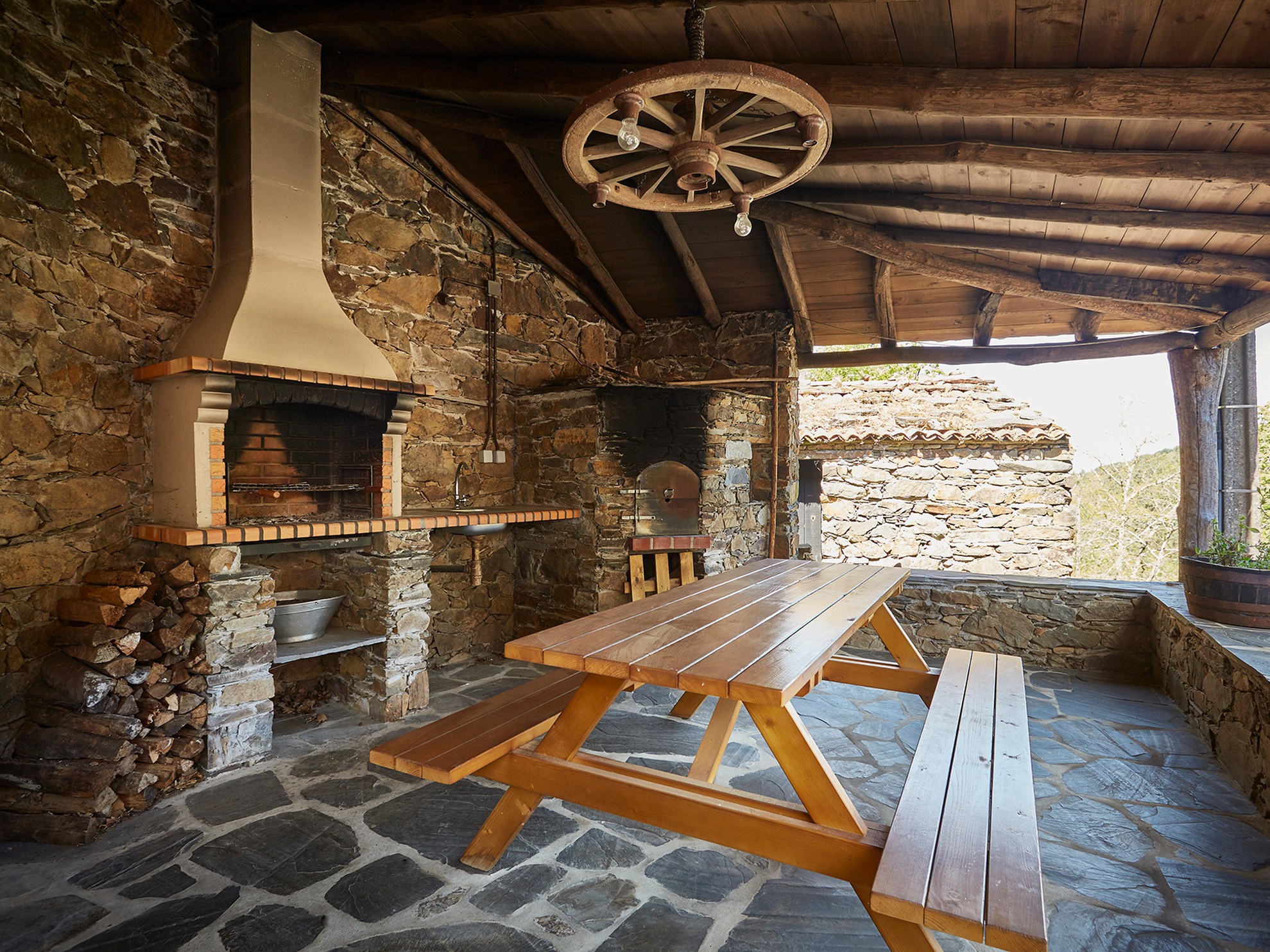 Os hóspedes podem usufruir da varanda e do espaço da churrasqueira para fazerem refeições com vista para a aldeia, onde poderão avistar javalis e veados que por aqui andam livremente. O ambiente da aldeia é sossegado e em simbiose com a natureza. De verão, a piscina natural da aldeia é um convite refrescante.
