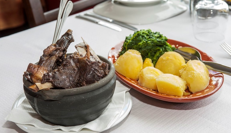 Carnes e bacalhau assados no forno, chanfana de cabra, queijo da Serra com doce de chila e a tigelada são alguns dos pratos fortes deste restaurante inserido numa das 28 Aldeias que compõem a rede das Aldeias do Xisto.